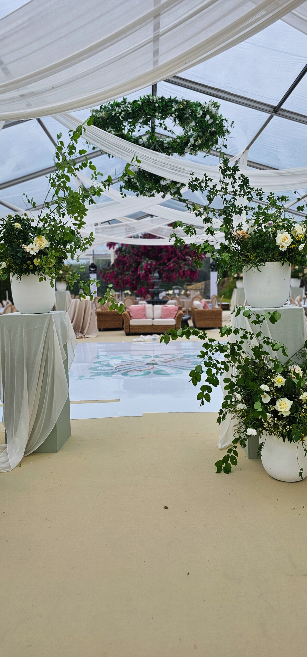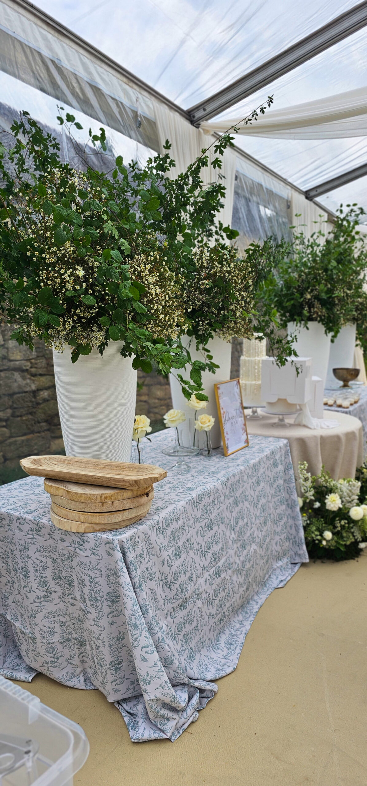 We curate each wedding individually, therefore we do not have a set pricing. We will inform you about out what options lay within your budget once we understand your vision. It helps us a lot if you know more or less how many guests you’ll be expecting, how many tables to dress, number of buttonholes, bridesmaids bouquets, floral arches etc. It will help us estimate the ballpark figure for you.
