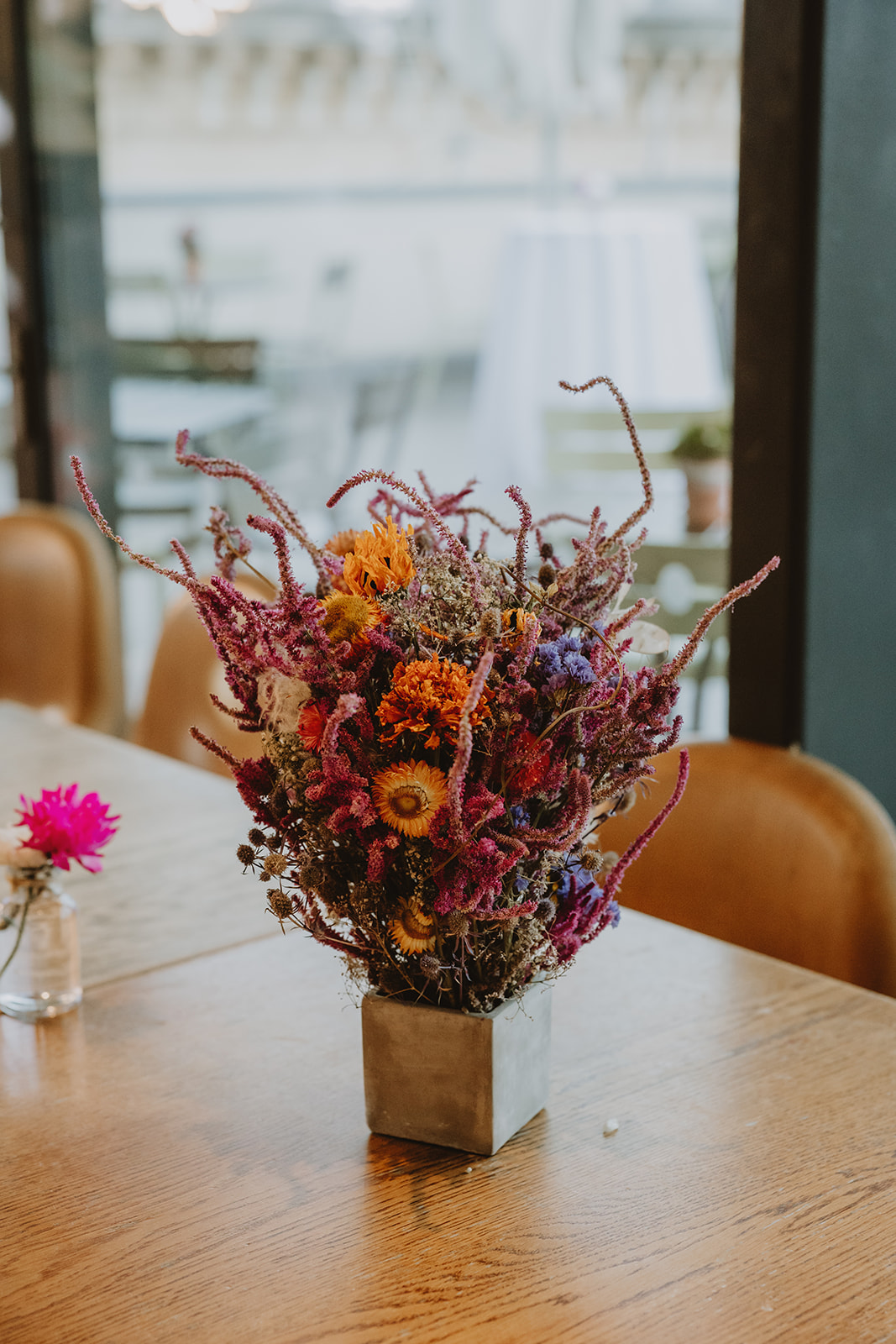 We range between the wilderness of a floral meadow to a very artistic and sculptural work. Leaning towards mix of colours and textures rather than the classic white and green. Led by seasons, our favorite one is Autumn.