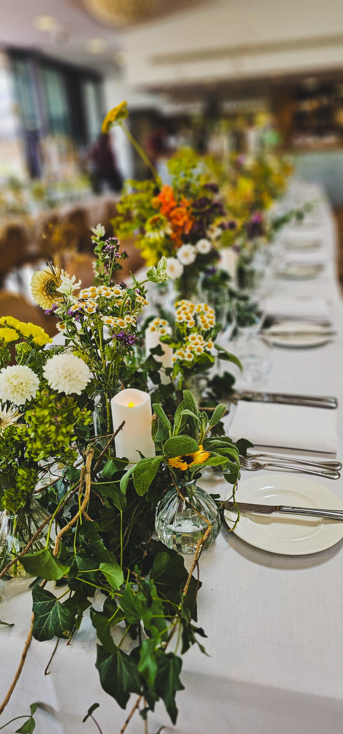 Sustainability is at the core of all we do, so whether it’s our wedding bouquets, buttonholes, floral arches, table settings or decorative pieces, we use 100% natural materials, no toxic foam or single use plastics guaranteed and no fake flowers in sight! During the British flower season, your wedding can be fully flowered with stems sourced in Oxfordshire. Local flower farms are brilliant at increasing biodiversity, help bees and make sure your money goes to hard working people passionate about growing. Out of season we order stems from wholesale providers, with a selection of EU-only growers who have the highest level of environmental certification (MPS 1, A or A+), and where workers rights are observed. With all those efforts, we have been awarded an Ethical Business Accreditation by The Good Shopping Guide.